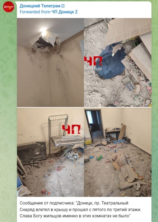По данным представительства ДНР в Совместном центре по контролю и координации режима прекращения огня (СЦКК), ВСУ нанесли удар по центру столицы из гаубиц 155-го калибра (стандарт НАТО) со стороны оккупированной Карловки…»