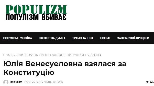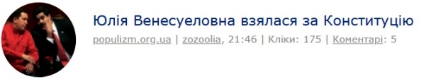 Ну и чтобы дважды не вставать, чтобы выписать очередной подсрачник порохошавкам, обращу внимание еще на один выпердыш шоколадной пропаганды: заметку «Юлія Венесуеловна взялася за Конституцію» на откровенно смердючем порохоботном ресурсе populizm.org.ua