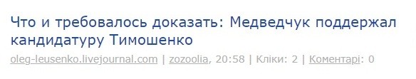 Но вообще, хорошая новость здесь есть. И заключается она в том,что прибегая к таким приемам (цитировать похвальную речь Тимошенко авторства «козла отпущения» через настолько пидорский ресурс), МИП показывает,что,во-первых,они действуют заодно с Медведчуком, и, во-вторых,действуют через самых главных шестёрок в Украине.
