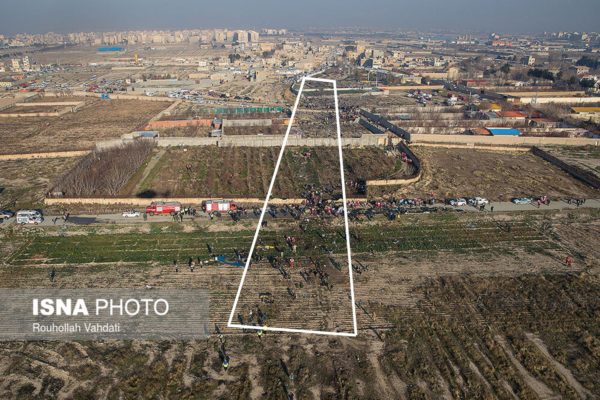И новая информация появилась — удалось связаться с автором снимка, и он сказал, что сделал его в жилом квартале Паранд на юго-западе Тегерана. Теперь можно, зная местоположение этого квартала, аэропорта вылета, точку последнего срабатывания бортового автоответчика (транспондера), место падения обломков и направление движения самолета в момент падения (видимое по направлению выпадения обломков), составить общую картину с примерной траекторией движения самолета.