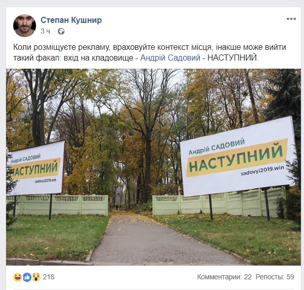 3 комментария читателей статьи "Наступний: політичну рекламу Садового розмістили біля входу в старий цвинтар"