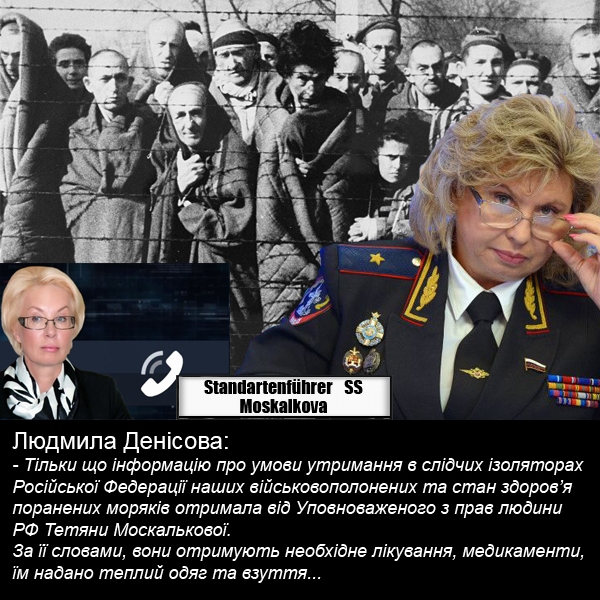 Если б вместо Москальковой прилепить Петьку с девизом: «Мы идём в Европу!», то картинка стала бы убийственной. А вместо Денисовой — какого-нибудь Кролика или любого из их шайки-лейки с жирной физиономией. Вообще за решёткой — будущее Украины.