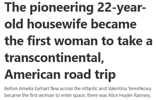 Именно за этот трансконтинентальный пробег имя Алисы Хайлер Рэмси было увековечено в Зале автомобильной славы.