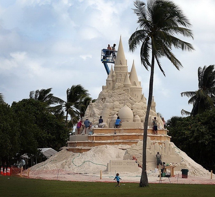 Над созданием шедевра, на котором изображены популярные достопримечательности, в частности, Тадж-Махал, статуя Свободы, Пизанская башня, виды Стамбула и Майами — работало около 20 мастеров под руководством известного скульптора Теда Сиберта (Ted Siebert), специализирующегося на строительстве объектов из песка. При создании замка было переработано 1,8 тыс. тонн песка.