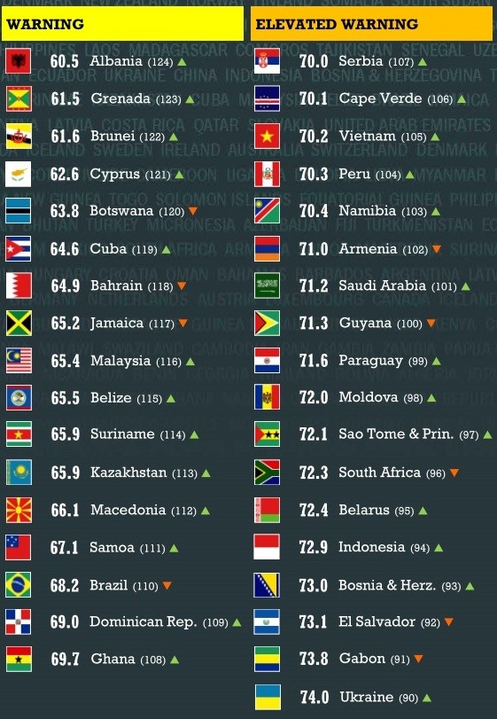 1. Elevated Warning (41 страна, включая Украину и ватную империю)
